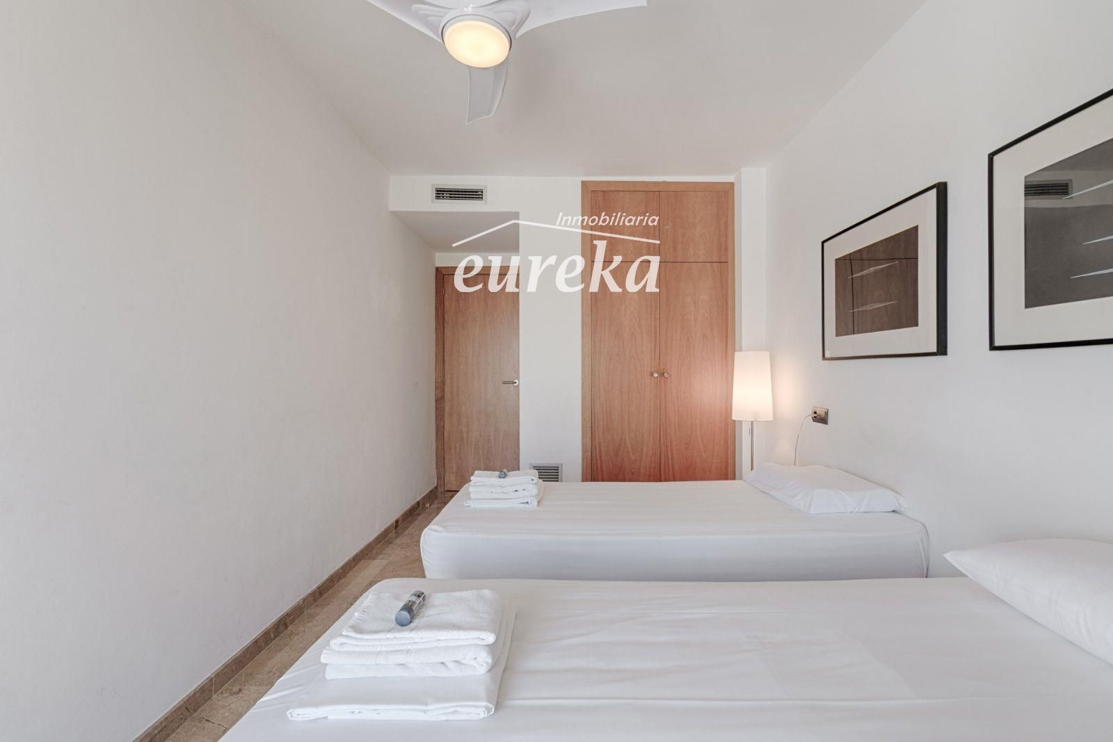 Sie verfügt über zwei Doppelschlafzimmer, jeweils mit Zugang zur Terrasse, und ein Badezimmer mit ebenerdiger Dusche.