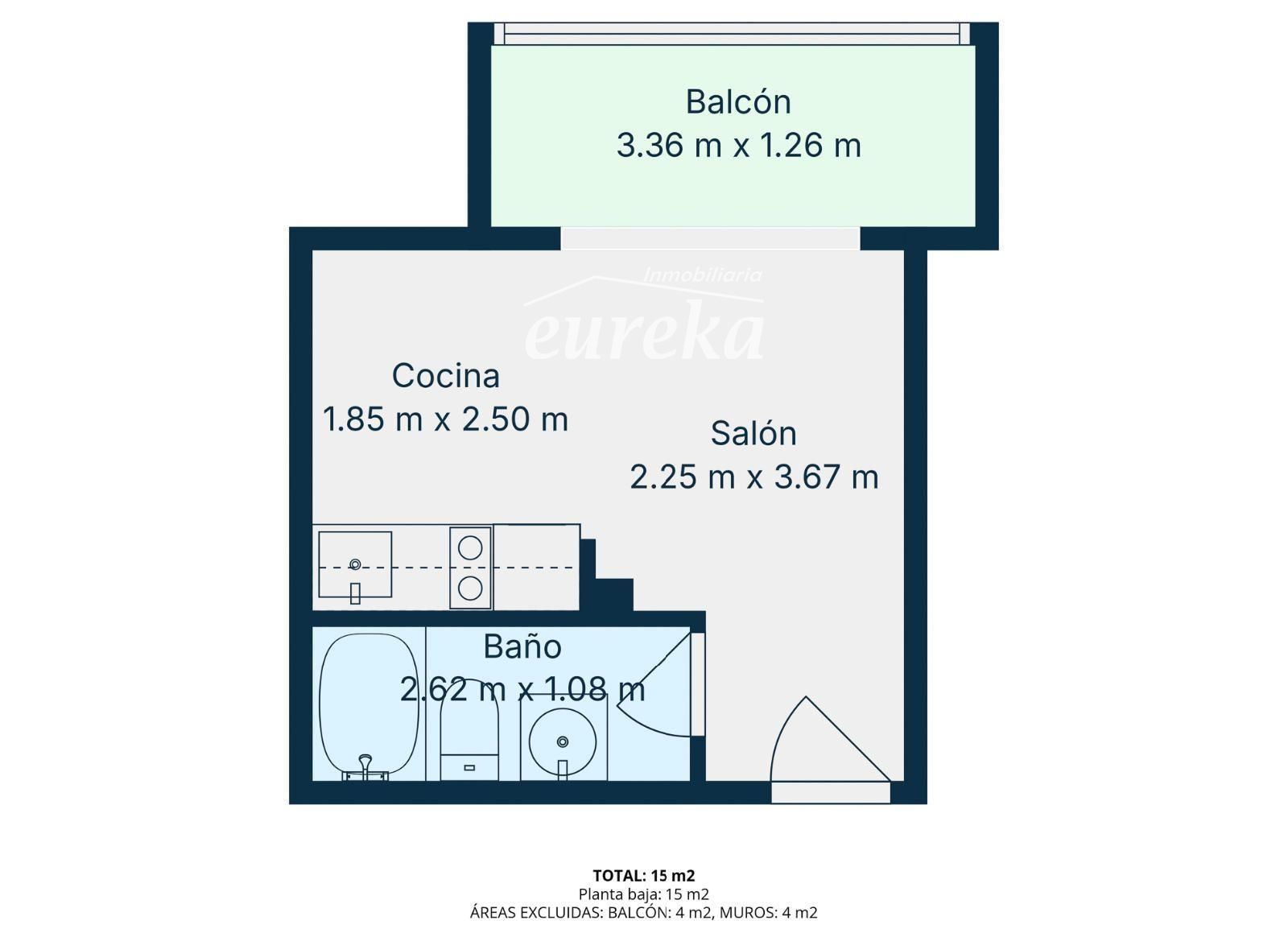 El estudio cuenta además con un baño completo con bañera. Se vende totalmente equipado y listo para entrar a vivir, ideal tanto como primera vivienda, inversión o escapada urbana.