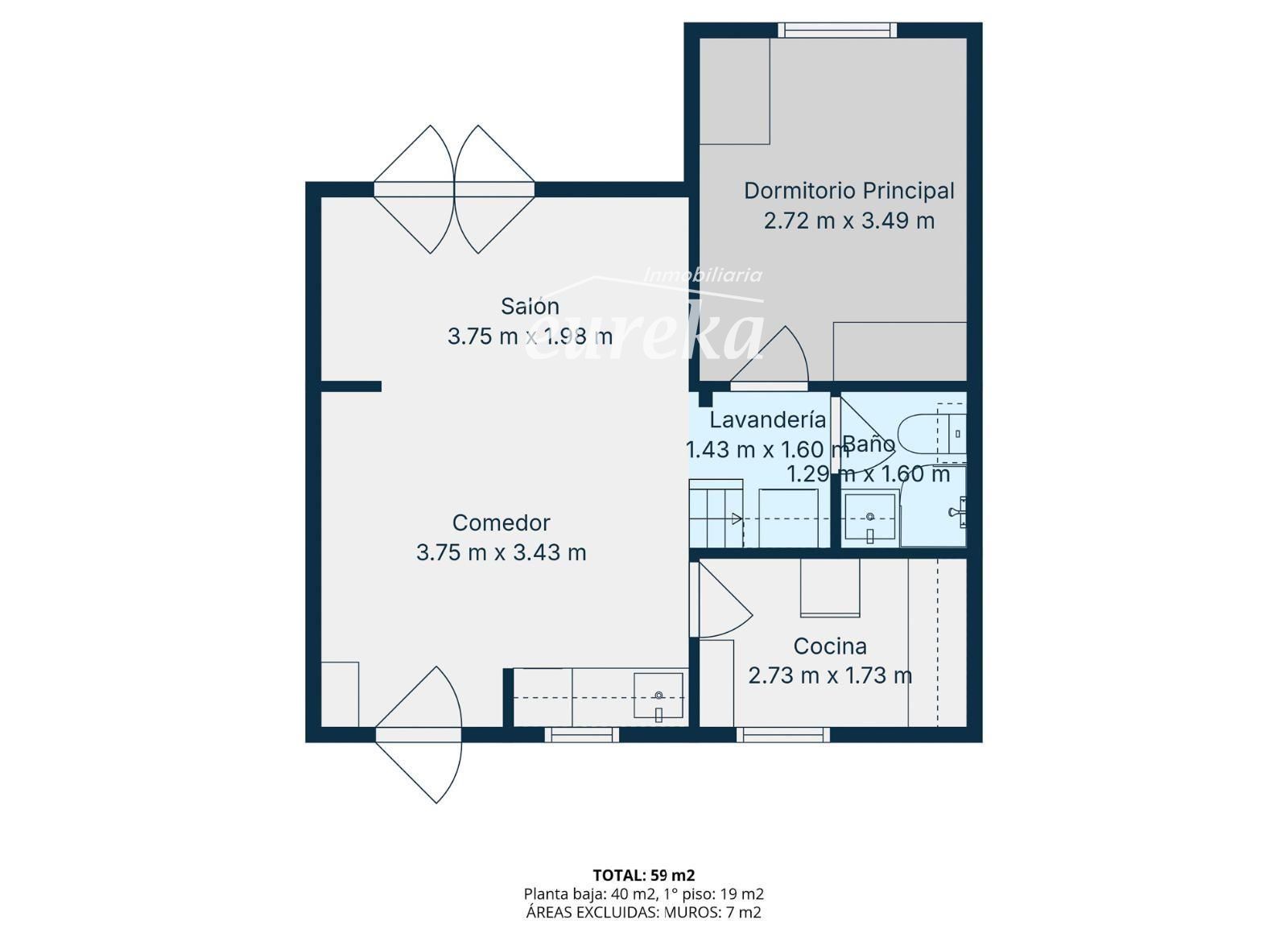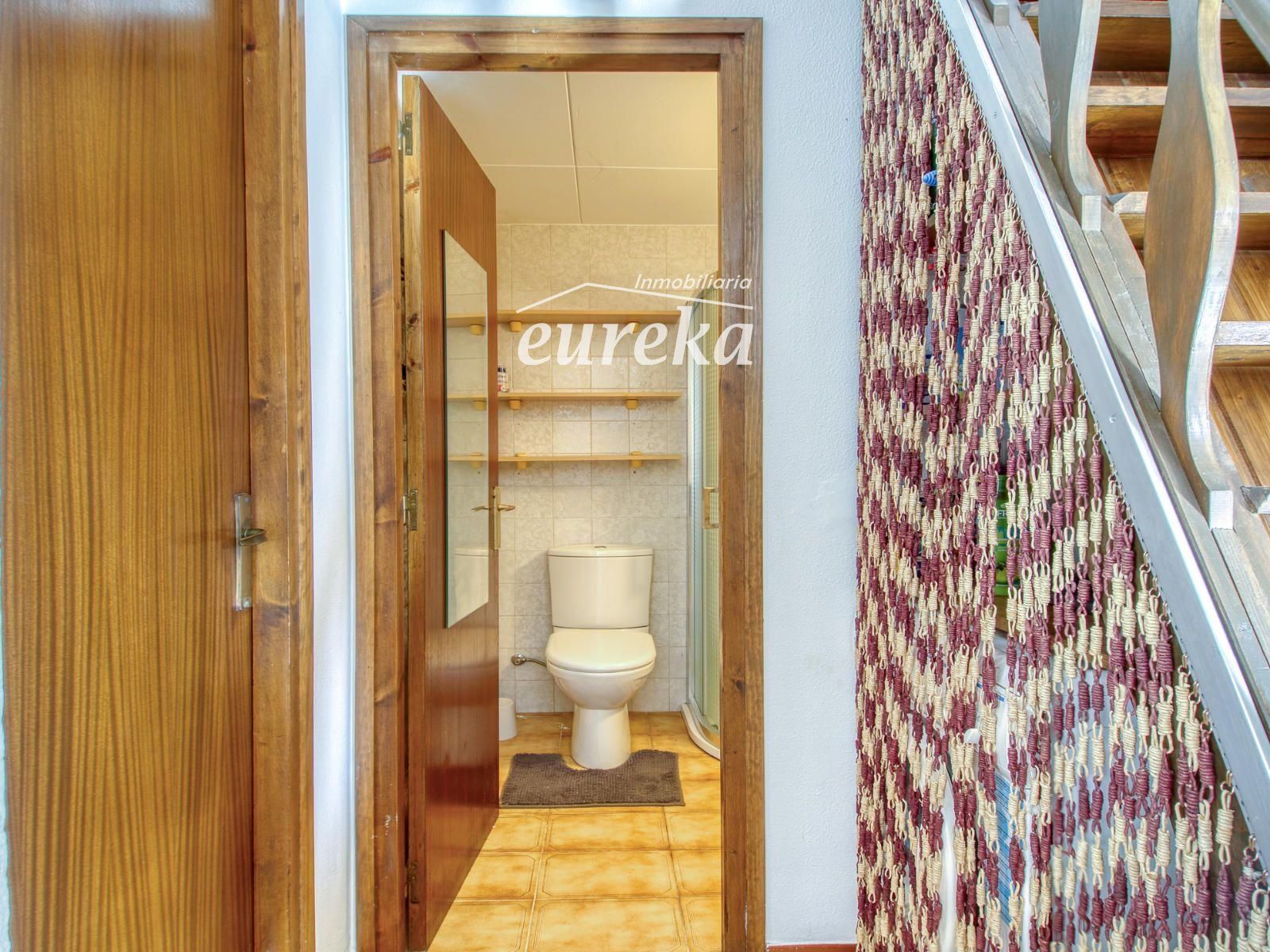 En la planta baja encontramos un luminoso salón-comedor con cocina americana, dos dormitorios —uno de ellos actualmente habilitado como zona de almacenaje para la cocina— y un baño completo con ducha. Desde esta planta se accede directamente al exterior de la propiedad, que dispone de una excelente orientación y disfruta de sol durante todo el día.